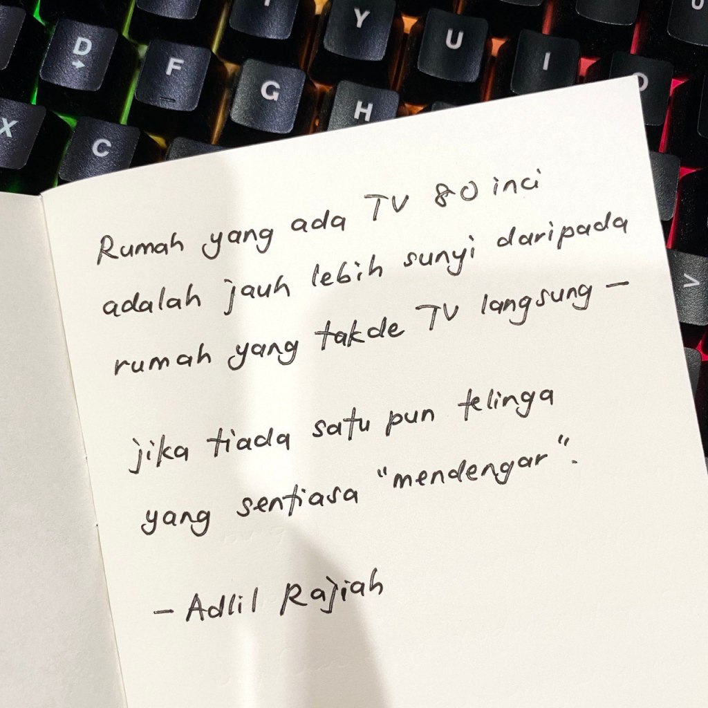 Bagi saya, rumah yang ada TV 80 inci, 800 juta channel, adalah jauhhh lebih sunyi daripada rumah yang takde TV langsung, tapi sentiasa ada sepasang telinga yang sudi mendengar.