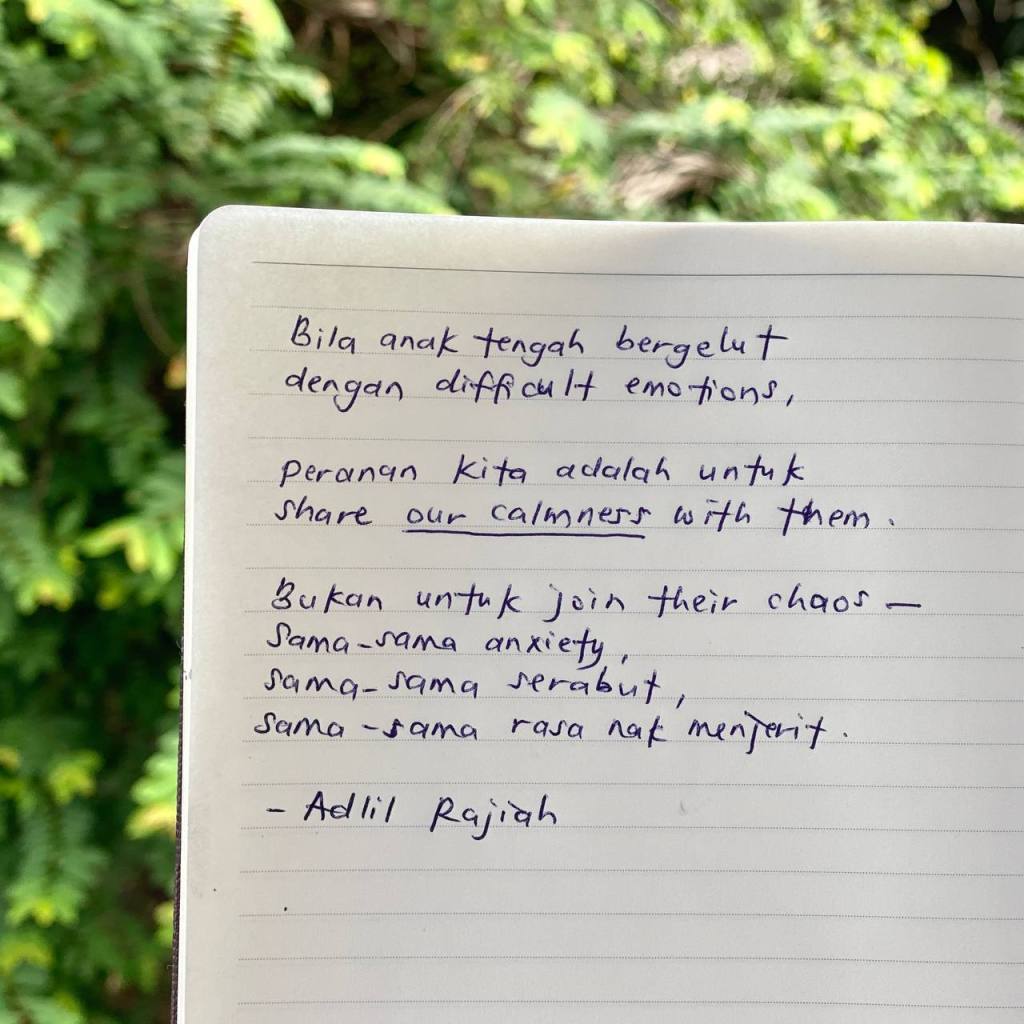 . - KEEP CALM & MAINTAN POSITIVE ATTITUDE. Jangan mengamuk, jangan menengking, jangan mengugut. Kids observe and imitate how you react to difficult situations. Show them good examples. SHARE YOUR CALM, bukan join their chaos.